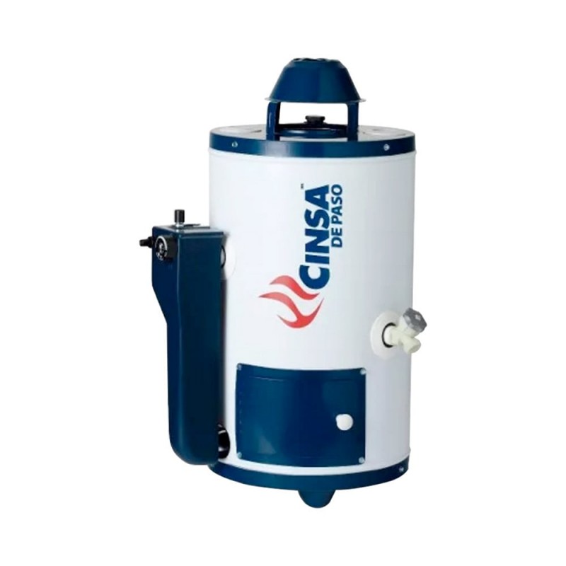 Calentador CINSA de paso, cómodo y seguro encencido con chispa. Su termostato es el más seguro, porque evita fugas de gas. Dura más de 10 años, gracias a su depósito porcelanizado que evita que se pique. Agua caliente continua. Combina agua caliente y fría para obtener la temperatura ideal.